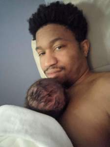 The actual pushing & delivery was nothing like I hd visualized. I expected to be looking deep into my husband’s eyes for support, but the reality was that I had to mentally turn inside myself for all the strength I could muster. He held my right leg the ENTIRE time, so he was putting in work of his own, but I was so focused that I wasn’t communicating much. The midwives used a few different pushing techniques, like the tug of war method, but mostly I was in a typical birthing position because it felt the most comfortable.